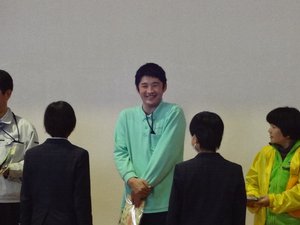 小学生の子たちや先生に拍手で出迎えられ、お手製メッセージ表彰状も授与。