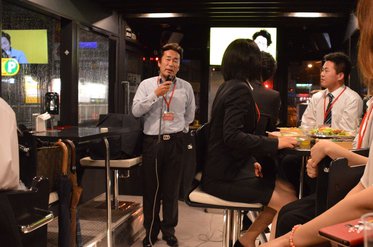 乾杯の後は、先ほど皆さんに準備していただいた『他己紹介』ポスターを使って、皆さんの前でお互いの紹介をしていきます。